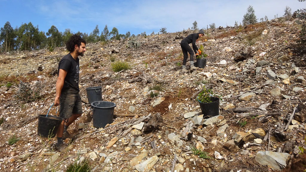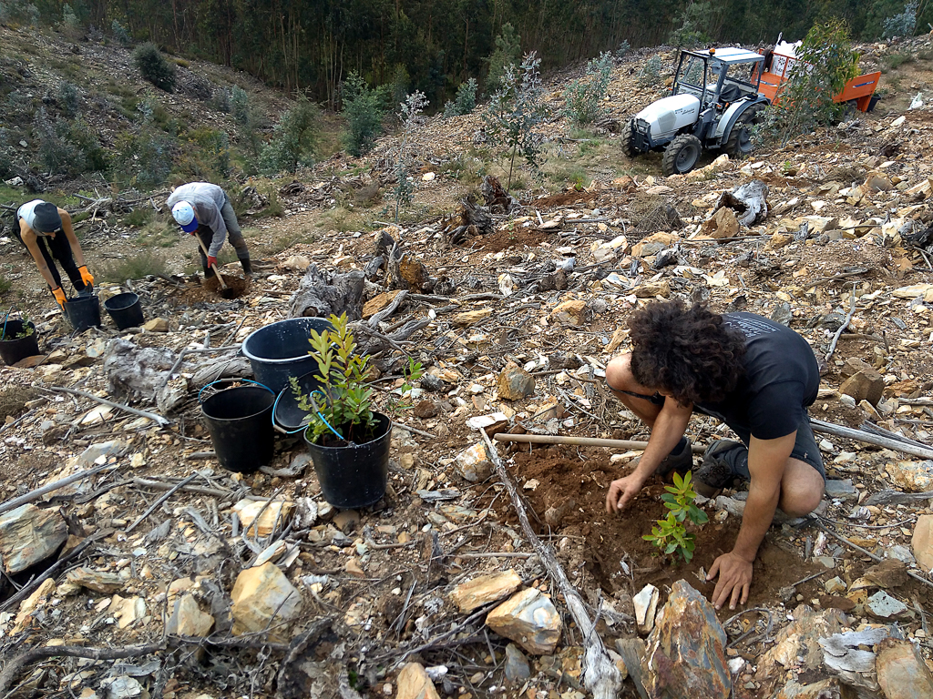 Apesar de reduzida, a equipa conseguiu plantar cerca de 250 sobreiros e medronheiros, dando por concluída a parte mais a oeste da parcela. Ainda faltam 2,6 ha junto ao terreno da Quercus, onde uma contribuição profissional deverá dar uma ajuda.
