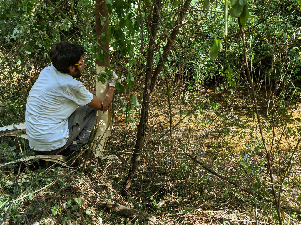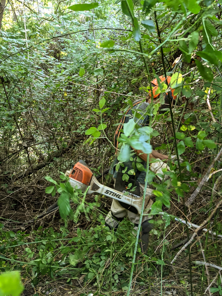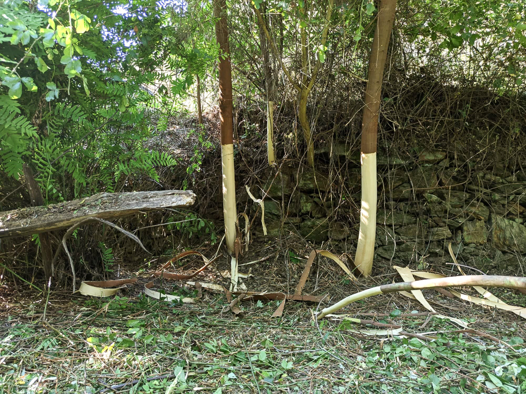 A primeira jornada do Verão realizou-se no dia 2 de Julho, ainda antes de os calores deste mês se instalarem, e desenrolou-se numa área que esteve bastante tempo desatendida: a Chousa. De facto quando aí se desenrolou esta jornada, a 18 de Novembro de 2021, a maior das antigas várzeas de cultivo que por aqui havia estava completamente impenetrável, não obstante as árvores que já a ocupavam, e as mimosas foram crescendo vertiginosamente nos últimos anos, aproveitando a ausência de seguimento. Nessa jornada abriu-se caminho com moto-roçadora e iniciou-se um trabalho de descasque e corte de mimosas, mas ficou ainda muito por fazer, pelo que desta vez se retomou esse trabalho.