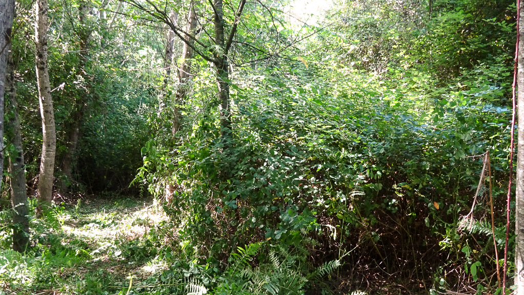 Aparte as várzeas, naturalmente, de acesso e movimentação fácil, as encostas circundantes têm declives muito elevados, dificultando enormemente a realização de trabalhos, que lá são muito necessários devido à presença de mimosas. De facto, quer a jusante quer a montante da várzea principal, as mimosas mantiveram-se em locais onde de facto já estavam antes das primeiras intervenções, ainda que com densidades mais baixas do que originalmente, mas ainda dominando a paisagem. Acresce a presença de silvado e matagal, em locais onde é muito difícil operar a roçadora… Por vezes nem se consegue chegar às mimosas!