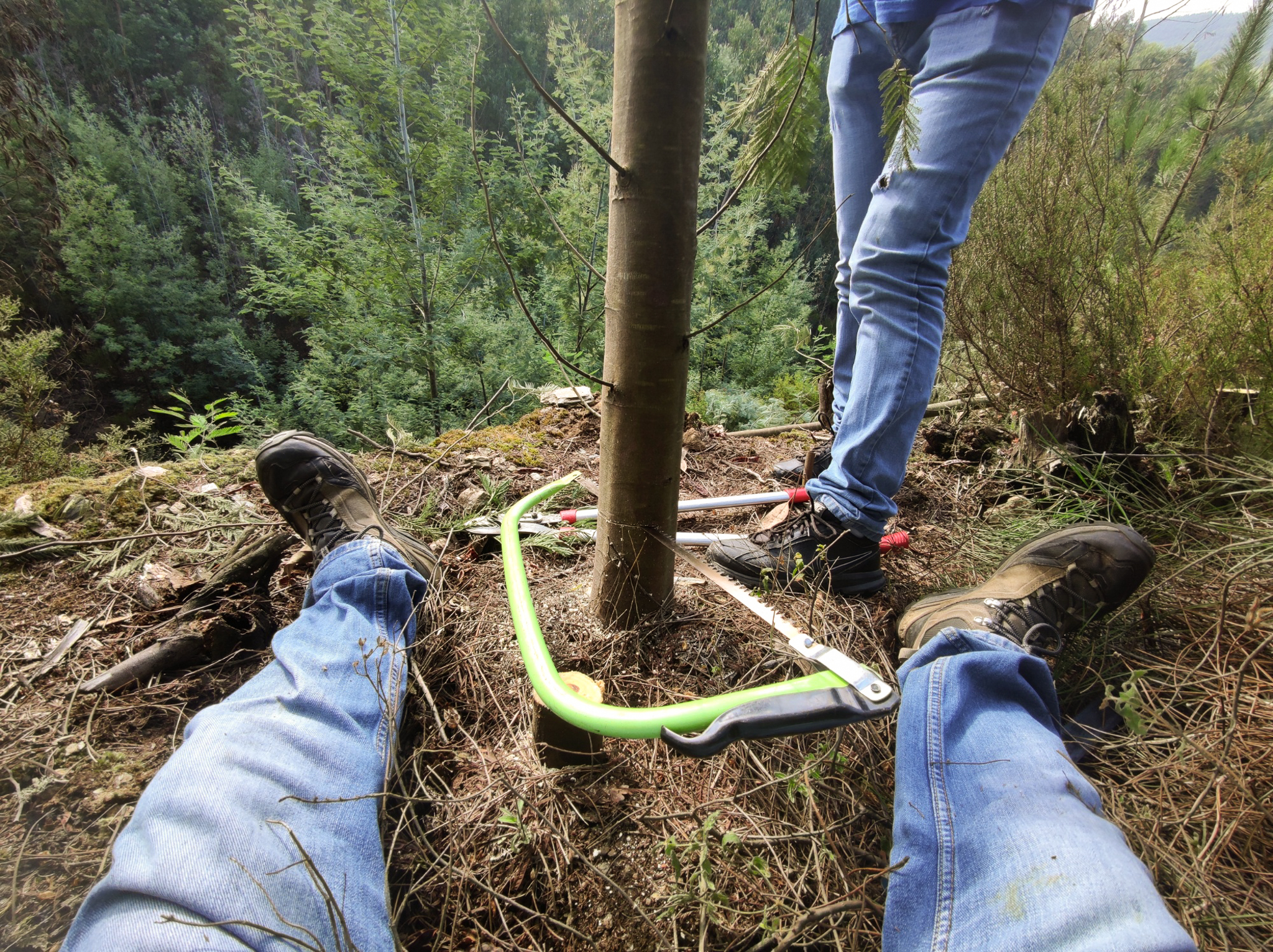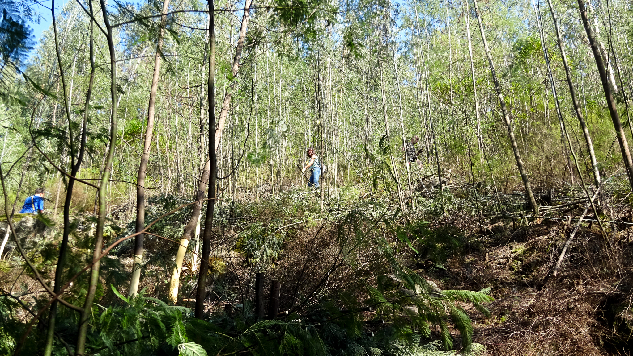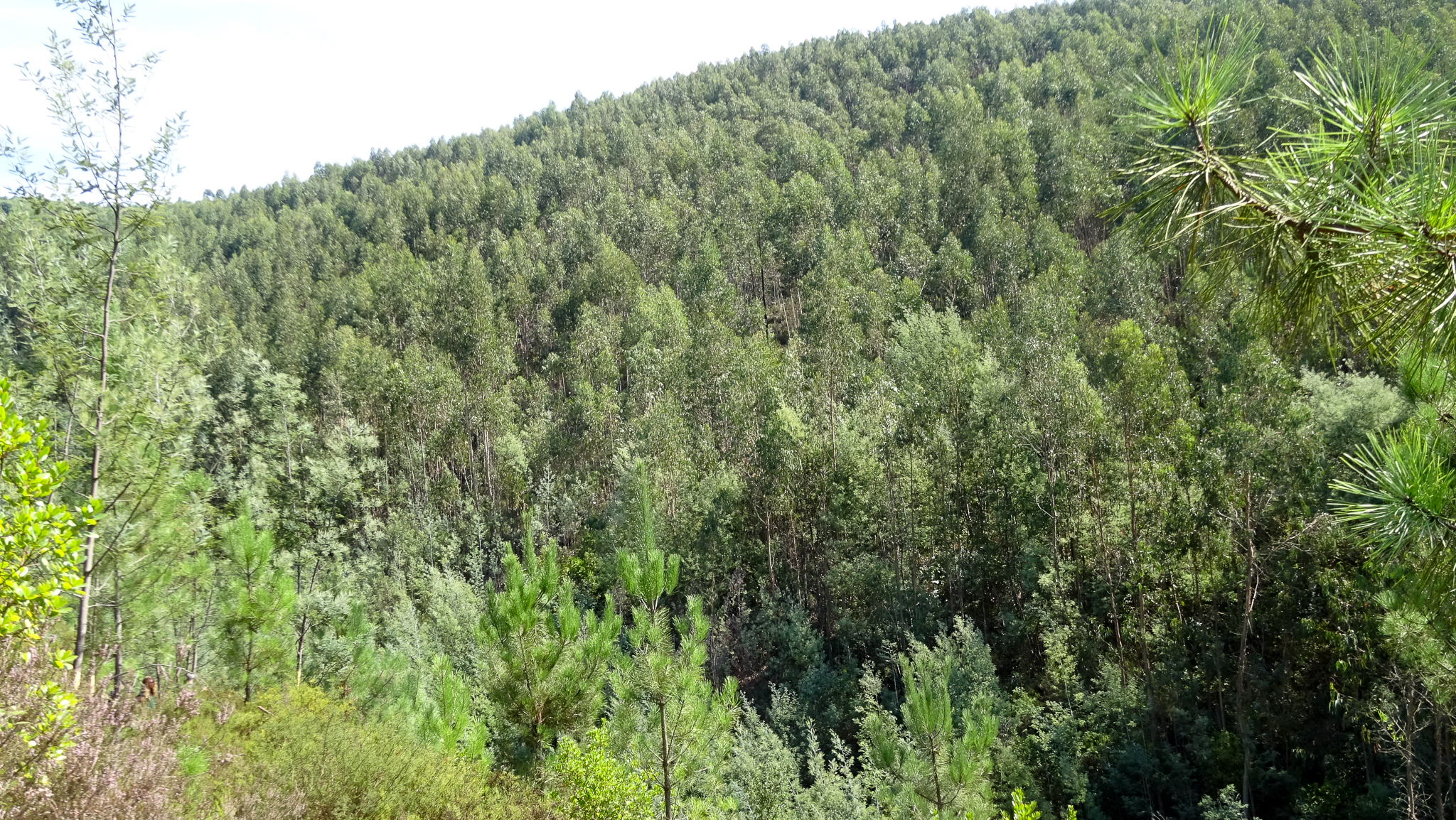 Mas de manhã a equipa ainda trabalhou sobretudo nuns socalcos que aqui foram abertos há mais de 15 anos para plantar eucaliptos, o que, se impactou muito o solo, também permite movimentos mais fáceis ao longo de um terreno de elevado declive. Enquanto isso, uma moto-roçadora ia limpando o silvado que impedia o acesso ao coração do vale.