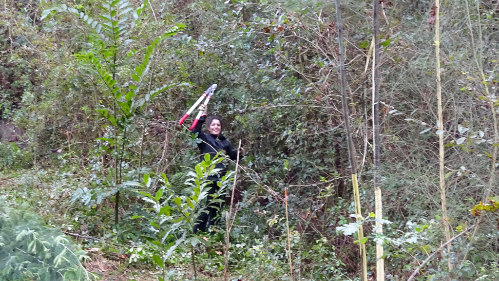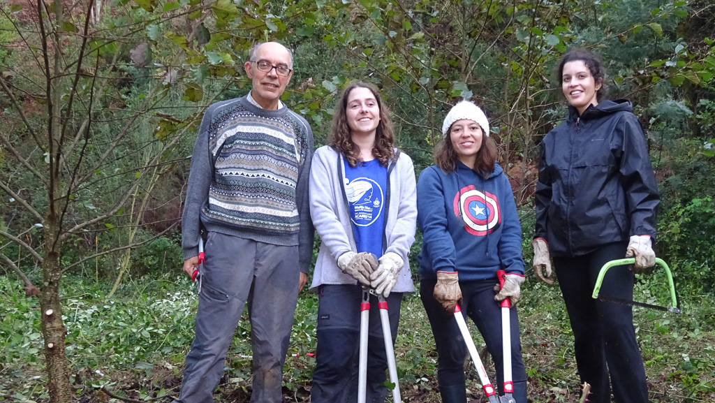 À tarde, já com menos um voluntário, fizeram-se trabalhos de corte de silvado e cuidado das árvores de uma pequena várzea a jusante do Feridouro, uma antiga parcela agrícola de onde grandes mimosas foram retiradas ainda não há muitos anos.