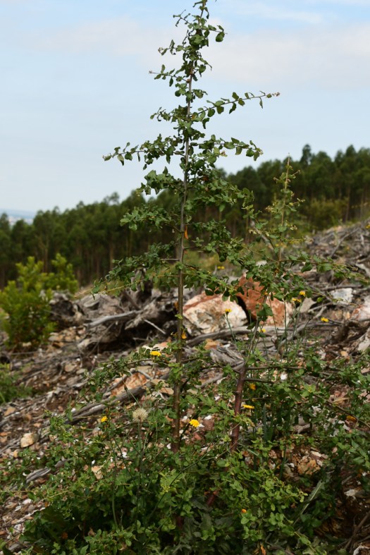 Os trabalhos decorreram com dinâmica; o tempo, que continuava fresco, ajudava. O cuidado das árvores incidiu sobretudo sobre os sobreiros, que têm o hábito inusitado de não crescerem direitos e também de gerar ramos laterais muito vigorosos, que às vezes “absorvem” quase toda a energia da árvore, limitando o seu crescimento em altura.