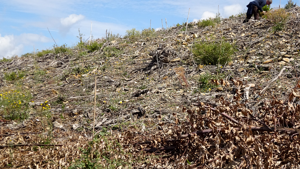 E as chuvas vieram, no princípio de Junho, generosas e preciosas, de maneira que, aquando da realização da última jornada de Primavera, no dia 10 de Junho, já tinham caído quase 60 litros por metro quadrado (em Belazaima). Por isso, quando uma equipa voluntária chegou nesse dia à Costa da Malhada para dar cuidados às árvores instaladas, já se respirava outro ar que duas semanas antes.