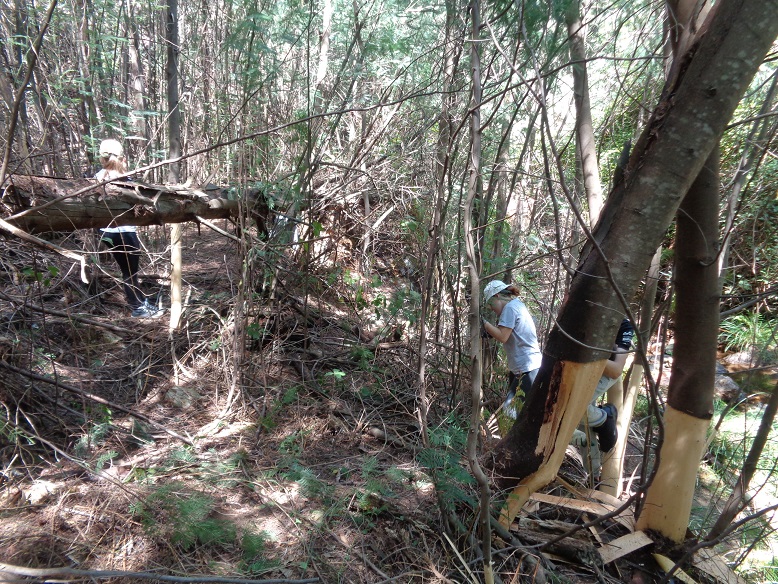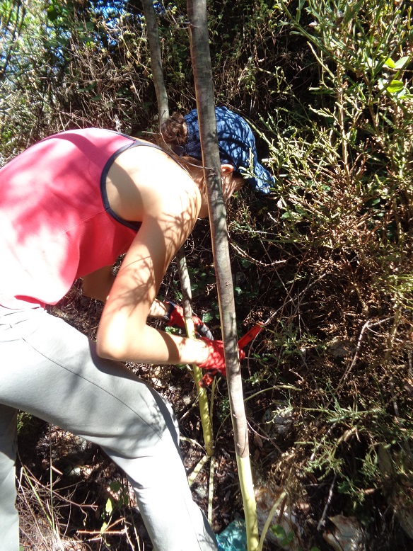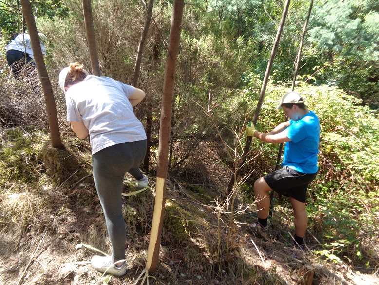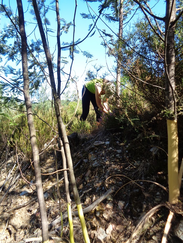 Os jovens do projeto que tem o apoio do IPDJ voltaram em força ao controlo e remoção de invasoras na espécie Mimosa (Acacia dealbata). Para alcançar as árvores, tivemos também de cortar as silvas e outras espécies do matagal atlântico usando tesouras da poda. Estivemos nas encostas da margem do Ribeiro de Belazaima junto a uma pequena represa que chamam chão do linho.