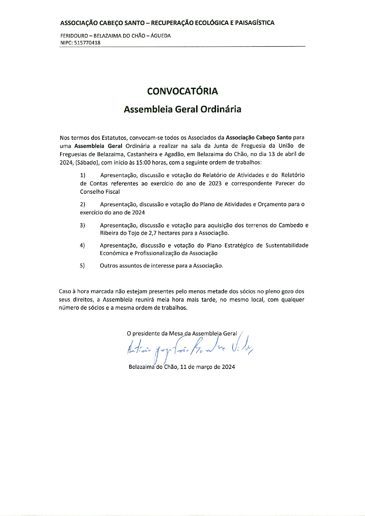 Associação Cabeço Santo – Recuperação Ecológica e Paisagística dedica-se à recuperação de áreas ecologicamente degradadas pela exploração florestal desadequada de espécies exóticas e pela expansão de espécies invasoras, promovendo o valor ecológico e paisagístico dessas áreas através da recuperação e da instalação de espécies da flora autóctone e da remoção de espécies exóticas.