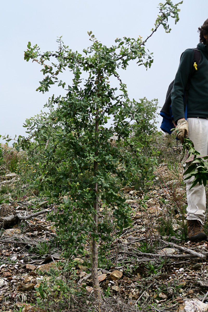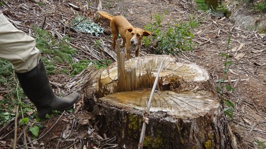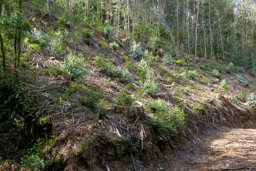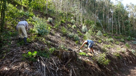 A manhã decorreu numa encosta perto do Vale da Estrela, recentemente “deseucaliptada/desmimosada”, que tinha sido plantada na jornada de 17 de Fevereiro. Como já se esperava, os eucaliptos e as mimosas rebentaram, estando agora essa rebentação com o tamanho ideal para ser retirada com pouco esforço. Foi que se fez, sempre de olho nas árvores plantadas, que para já pareciam estar a reagir muito bem. Claro que será uma operação que terá muito provavelmente de ser repetida, mas logo veremos.