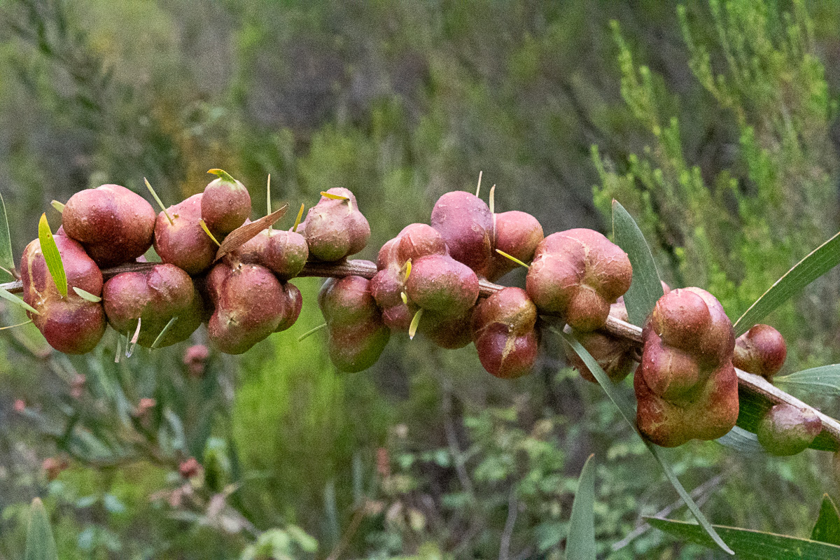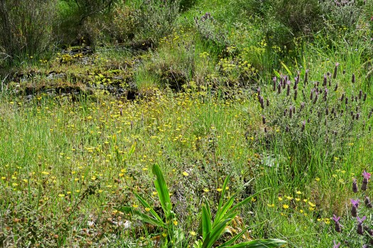 No dia 18 de Maio fez-se a jornada de visita. O grupo era pequeno mas havia muita beleza para admirar! O Maio húmido, bem ao contrário do do ano passado, permitia adivinhar a ocorrência de muitas flores e assim aconteceu: o esforço da subida às cotas mais elevadas do Cabeço Santo foi premiado por um manancial de cores e de formas. Observou-se também como a vespa Trichilogaster acacialongifoliae está bem estabelecida por estas paragens e a cumprir o seu papel: praticamente não há frutificação da acácia-de-espigas, chega a haver plantas que caem com o peso das galhas(!) e é evidente o enfraquecimento de muitas, chegando mesmo a secar.