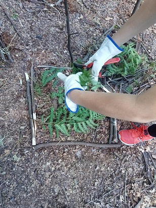 As ações de voluntariado concentraram-se na área da Chousa, nas imediações do Ribeiro de Belazaima, próximo ao lugar do Feridouro. As atividades desenvolvidas foram de extrema importância para a conservação e recuperação do ecossistema local. Especificamente, realizamos a sinalização de pequenas árvores que germinaram espontaneamente, o que é fundamental para garantir a proteção dessas novas plantas. Para proteger essas árvores, criamos ninhos ao seu redor, uma técnica que auxilia na sua sobrevivência e crescimento. Adicionalmente, colocamos matéria orgânica no solo, uma prática que visa cobrir e fortalecer o solo, promovendo assim um ambiente mais propício para o desenvolvimento das plantas.