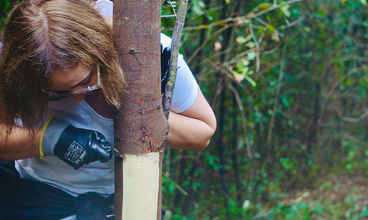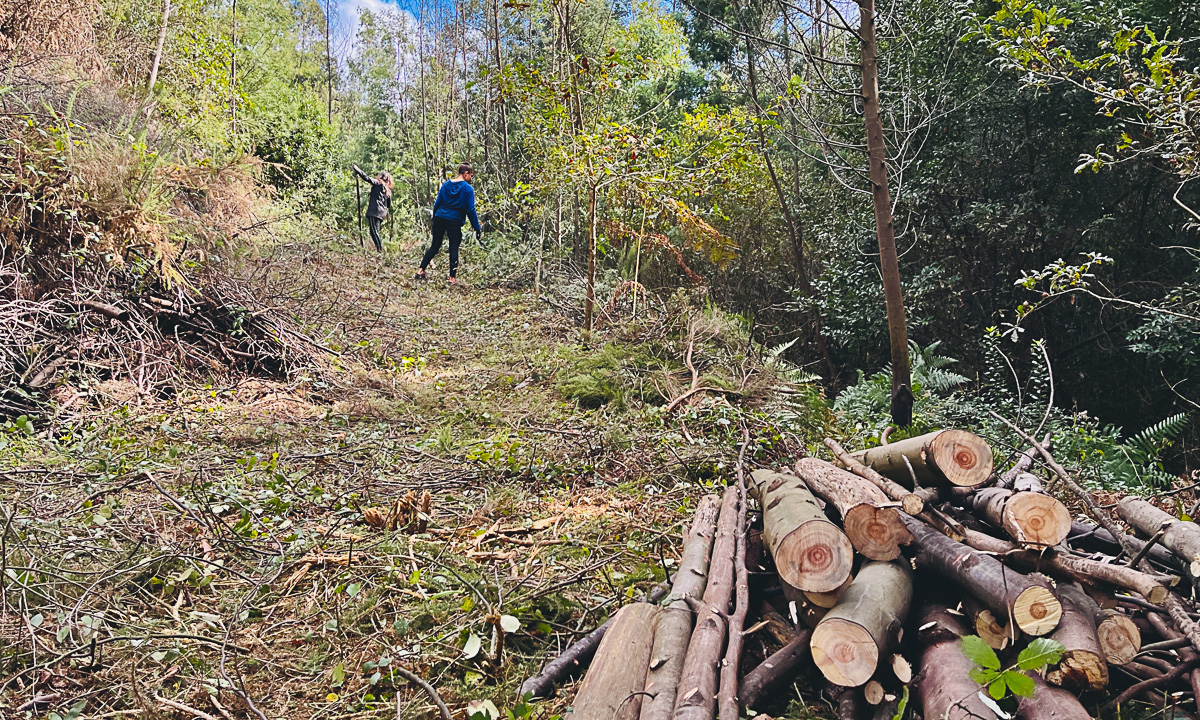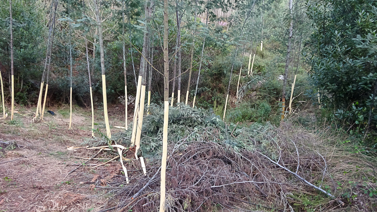 Também se deram cuidados às árvores autóctones (as plantadas e algumas espontâneas), desramando e removendo rebentação secundária.