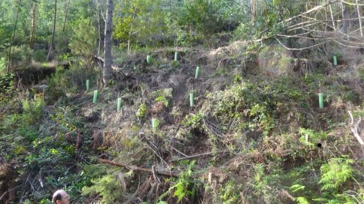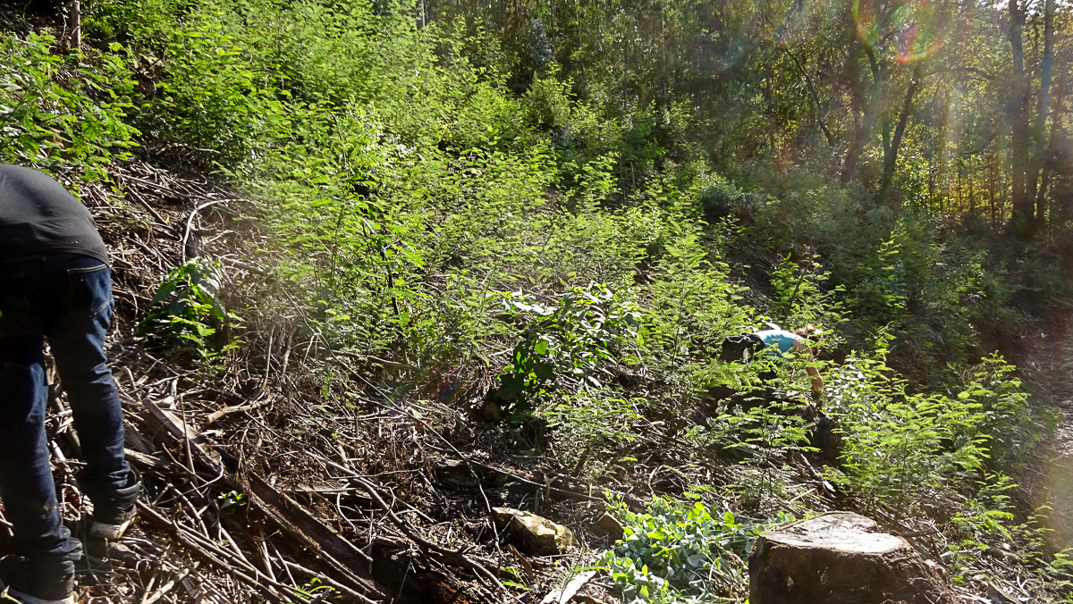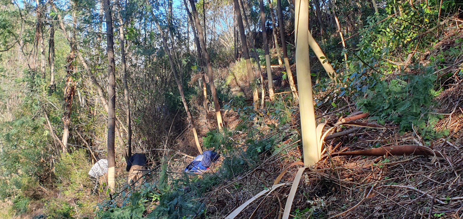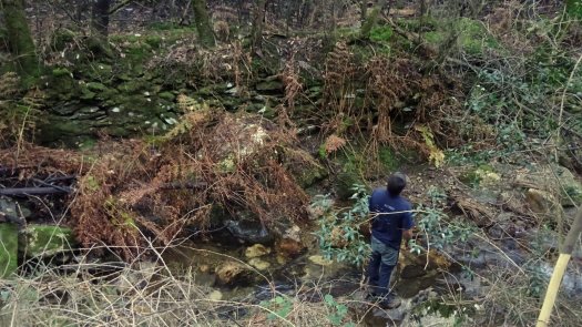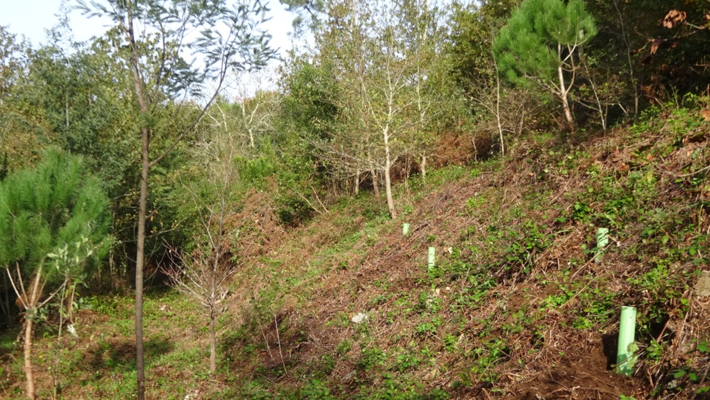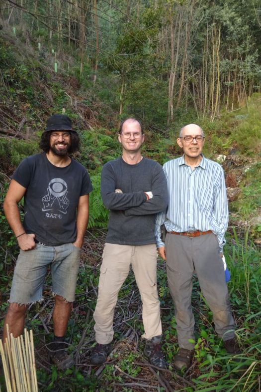 No dia 14 de Dezembro concluíram-se as jornadas de Outono com trabalhos de descasque de mimosas e plantação de adensamento numa encosta do Chão do Linho. Apesar do nome, a zona de trabalhos era exactamente o oposto de “terra chã”, que significa “plana”. De facto, o Chão do Linho também tem algumas pequenas várzeas junto ao ribeiro, mas a maior parte da sua área é constituída por encostas bastante inclinadas e mesmo por afloramentos rochosos e pequenas escarpas, que se erguem sobre o curso do ribeiro. A parte trabalhada já tinha sido plantada há uns 7 ou 8 anos, e de facto essas árvores encontram-se lá com 3 ou 4 metros de altura. Mas, o desenvolvimento das mimosas e do silvado ultrapassaram-nas completamente, acabando por ficar numa espécie de stand by em termos de crescimento! Portanto, a plantação desta jornada foi uma operação de adensamento, sendo que, para garantir o futuro desta formação, o acompanhamento (das mimosas e do silvado) é obrigatório.