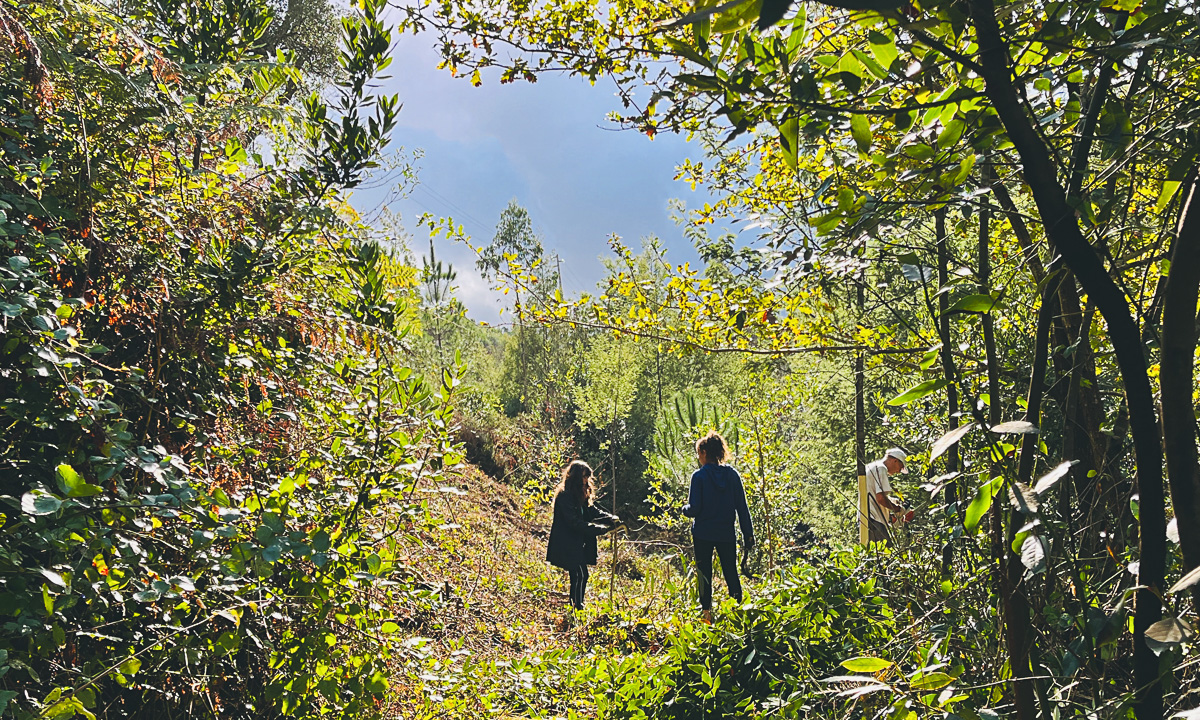 A 12 de Outubro, 6 voluntários (entre os quais 5 de um projecto artístico de Águeda) participaram numa jornada que se iniciou a montante do Vale de São Francisco, uma zona também conhecida como Chão do Pinho. Trabalhos profissionais recentes de corte de silvado tornaram possível o acesso a locais antes inacessíveis e assim foi possível alcançar as últimas mimosas que por aqui ainda prosperam e descascá-las. Outras, descascadas há cerca de um ano, já se encontravam secas e foram cortadas, desramadas e arrumadas. Também foram realizados trabalhos de cuidado das plantas autóctones, desramações e selecção de rebentação, sobretudo de loureiro.