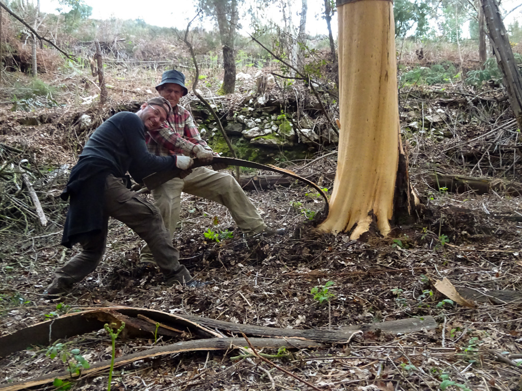 Depois de uma passagem por uma zona do Chão do Linho onde uma equipa de profissionais cortou uma mancha de eucaliptos e mimosas, foi feito um trabalho idêntico ao primeiro mas na Ribeira do Tojo, onde a grande maioria das árvores tinham sido plantadas a partir de 2010. Aqui a dificuldade maior foi a selecção das árvores a cortar. Afinal, tinham sido plantadas e cuidadas durante 15 anos!
