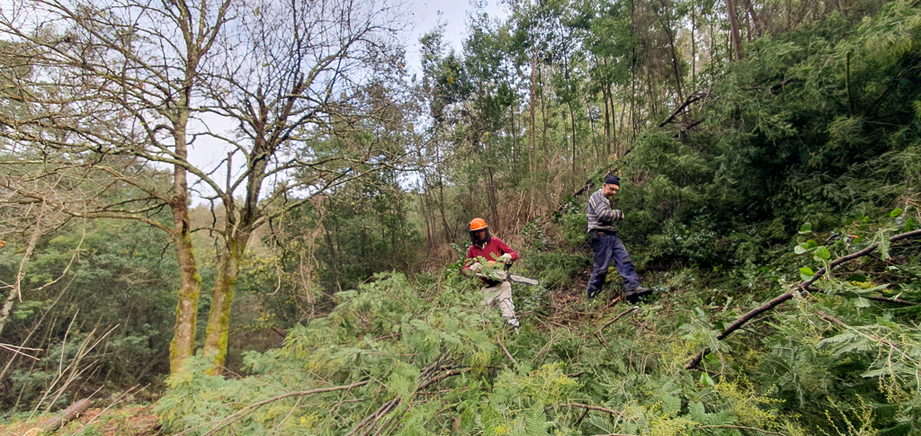 No dia 1 de Fevereiro voltou-se à mesma zona da jornada anterior, mas agora para remover e gerir algumas mimosas caídas e dar cuidados às árvores plantadas há alguns anos, desramando, retirando rebentação secundária e fertilizando. Foi uma jornada um pouco acidentada, mas lá se conseguiu terminar…