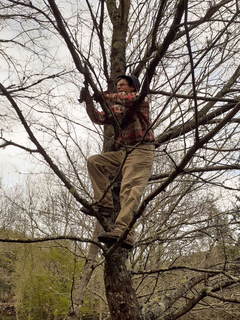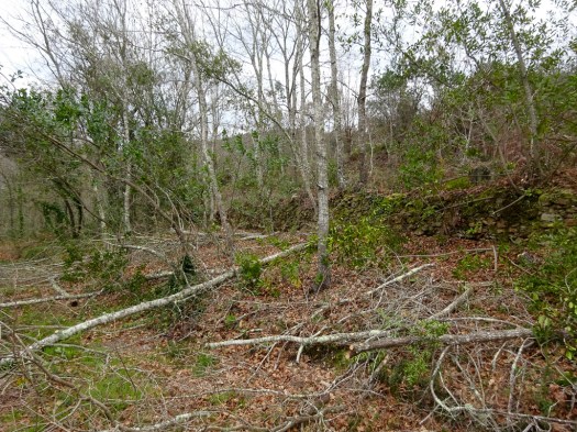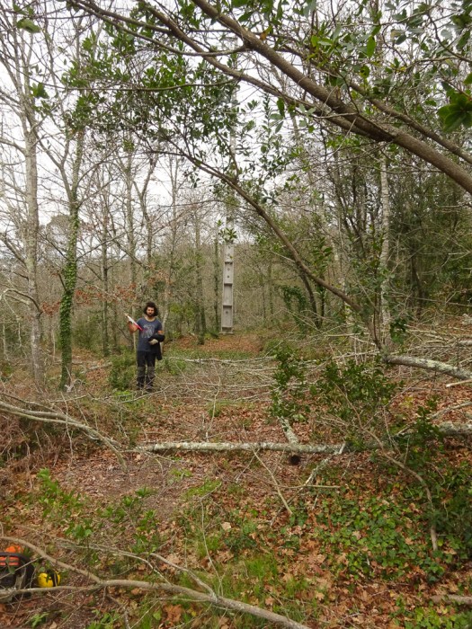 No dia 1 de Março, nova pausa nas plantações. Neste dia os trabalhos foram, bem ao contrário, de corte de árvores. Primeiro no Chão do Pinho, logo a seguir ao Vale de São Francisco. Aqui a maior parte dos carvalhos são espontâneos, pois existiam terras agrícolas onde se estabeleceram, e a presença de uma linha de média tensão limitava a possibilidade de se plantarem eucaliptos. Por outro lado, a linha ainda lá está, e agora é necessário tomar medidas para que as árvores não cresçam demasiado, aproximando-se dos fios. E a principal medida, nesta fase, é o desbaste das árvores, para que, com mais espaço, cresçam menos em altura.