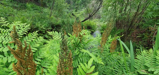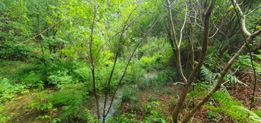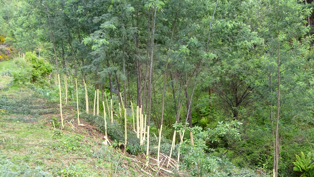 Aqui o cuidado das árvores consistiu sobretudo no corte ou arranque de fetos em torno das árvores plantadas e no controlo do silvado, que nestas terras férteis e frescas, cresce desmedidamente. Também havia várias mimosas grandes tombadas, que deram bastante trabalho a desmontar. Apesar da ainda haver muito a fazer por aqui, esta área é já muito interessante, pela dimensão e beleza das suas árvores. Mas, como as outras, requere acompanhamento regular…