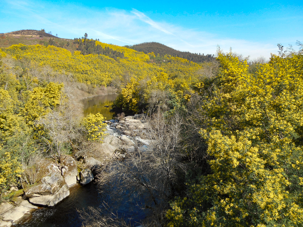 Assim aconteceu que, em poucas décadas, as mimosas ocuparam agressivamente não apenas as margens dos principais cursos de água e encostas adjacentes, mas também muitos vales onde a água corre apenas ocasionalmente. Em Belazaima, por exemplo, apenas se salvaram as margens ao longo das terras agrícolas em torno da aldeia. E, se sairmos da pequena bacia do Ribeiro de Belazaima para os principais rios da região – o Águeda, o Alfusqueiro, o Agadão, mesmo o Vouga – ficamos positivamente impressionados pelo estado lamentável em que se encontram as suas margens ao longo de dezenas de quilómetros.
