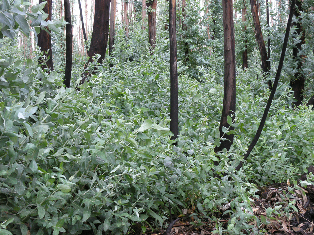 Na sequência do incêndio de 2005, extensas áreas foram afectadas pela ocorrência de eucaliptos de origem seminal, começando pelos próprios eucaliptais. Aparecendo com densidades de muitas plantas – dezenas – por metro quadrado, esses eucaliptos surgiram sobretudo em solos pouco perturbados, e, embora na altura fáceis de arrancar, a extensão da sua ocorrência acabou por ditar que muitos deles ficassem, aumentando a densidade das plantações originais.