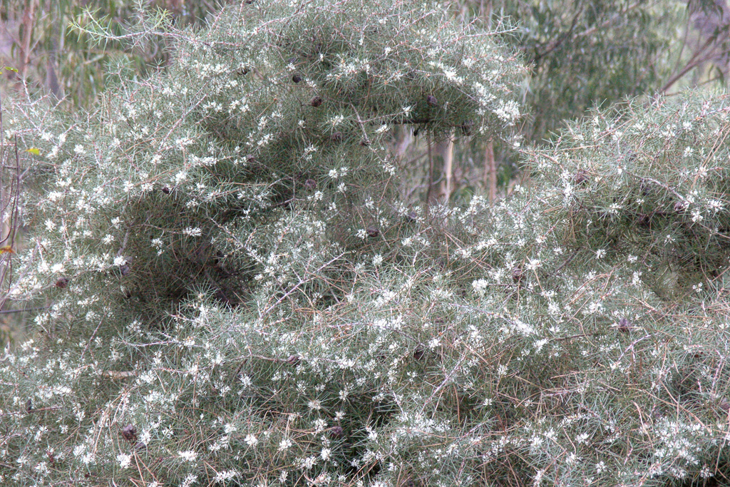 Uma espécie com alguma relevância no Cabeço Santo é a Haquea sericea (háquea-picante), um arbusto espinhoso que foi plantado ao longo dos limites da Mata do Cabeço Santo ainda provavelmente pelo seu primeiro proprietário. Reagindo reactivamente à passagem de um incêndio, as “pinhas” da planta “explodem”, libertando as suas sementes, que se podem espalhar por raios de dezenas de metros, germinando a seguir.