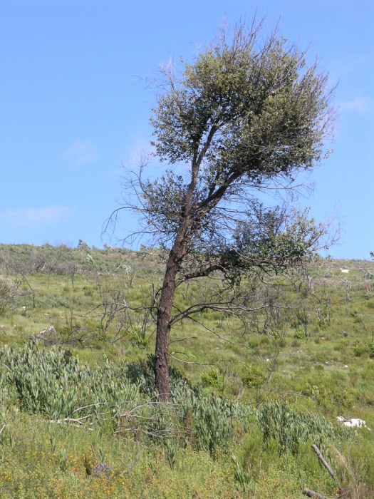 Tomando a carta de distribuição das quercíneas em Portugal como o principal indicador do tipo de coberto vegetal dominante no local, rapidamente se conclui estarmos na área de predominância do carvalho-roble (Quercus robur), espécie característica dos bosques atlânticos de clima temperado mas que, graças aos ventos húmidos do oceano e aos solos capazes de conservar a humidade, se adentra pelas regiões de clima mediterrânico do norte e centro do país. E no entanto os verdadeiros bosques de quercíneas são na região virtualmente inexistentes, fruto da milenar intervenção humana. Contudo, se não sobreviveram os bosques, sobreviveram árvores isoladas ou pequeníssimas manchas, e aí não há dúvida que o carvalho-roble, frequentemente consociado com o sobreiro (Quercus suber), é a quercínea potencialmente dominante. Na página “A ocupação humana” tenta-se descrever a paisagem local e a sua interacção com a vegetação espontânea, desde as últimas fases da economia de subsistência até aos dias de hoje.